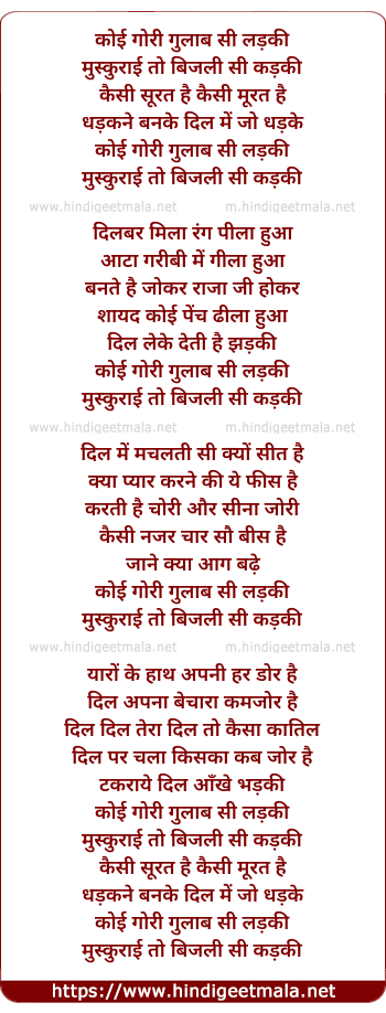 Lyrics of Koi Gori Gulabi Si Ladki - कोई गोरी गुलाब सी लड़की