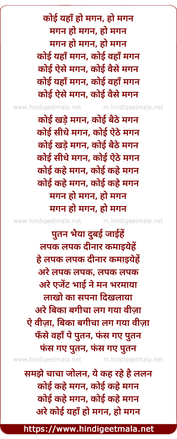 Lyrics of Koi Kahe Magan - कोई काहे मगन