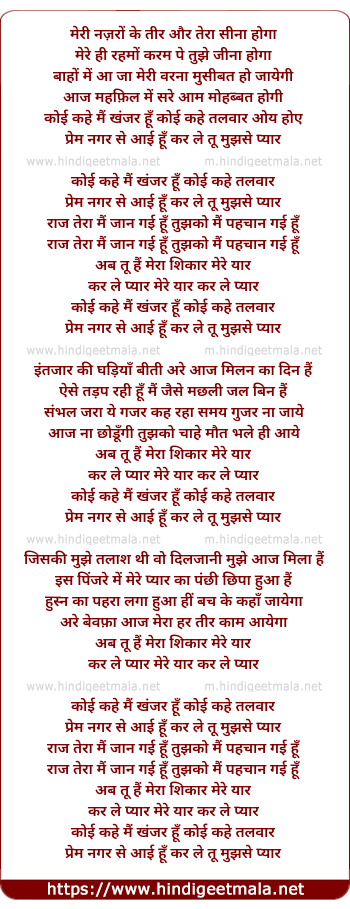Lyrics of Koi Kahe Mai Khanjar Hu - कोई कहे मैं खंजर हूँ