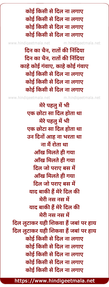 Lyrics of Koi Kisi Se Dil Na Lagaye - कोई किसी से दिल ना लगाए