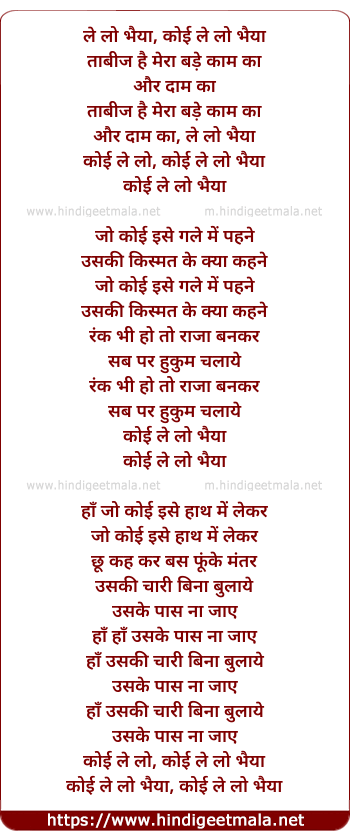 Lyrics of Koi Le Lo Bhaiya - ले लो भैया, कोई ले लो भैया