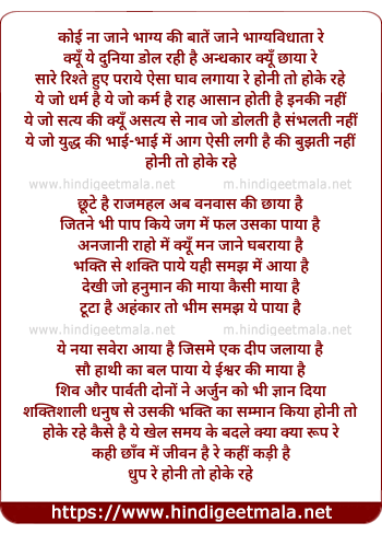 koi naa jane bhagy ki baate jane bhagyvidhata re