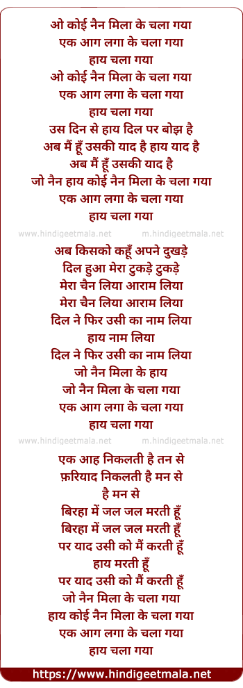 Lyrics of Koi Naina Mila Ke Chala Gaya - कोई नैन मिला के चला गया