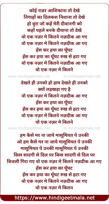 Lyrics of Koi Nazar Aashiqana To Dekhe - कोई नज़र आशिकाना तो देखे