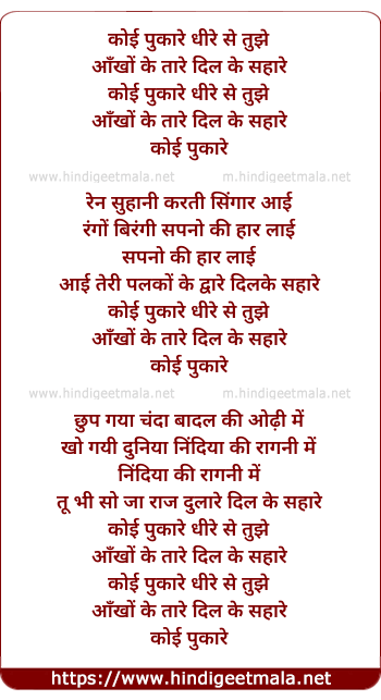 Lyrics of Koi Pukare Dhire Se Tujhe - कोई पुकारे धीरे से तुझे