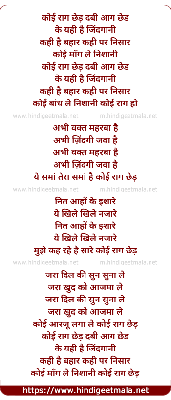 Lyrics of Koi Raag Chhed Dabi Aag Ched - कोई राग छेड़ दबी आग छेड