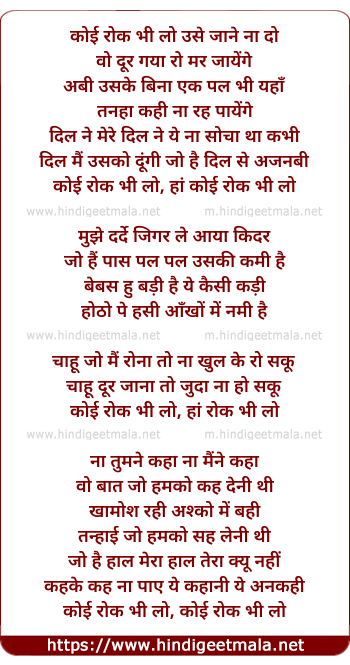 Lyrics of Koi Rok Bhi Lo, Usse Jaane Na Do - कोई रोक भी लो, उसे जाने ना दो