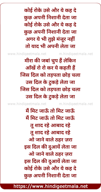 Lyrics of Koi Roke Use Aur Ye Kah De - कोई रोके उसे और ये कह दे