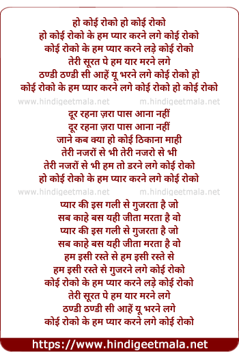 Lyrics of Koi Roko Ke Hum Pyar Karne Lage - कोई रोको के हम प्यार करने लगे