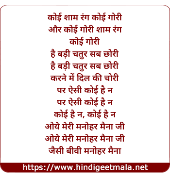 Lyrics of Koi Sham Rang Koi Gori - कोई शाम रंग कोई गोरी