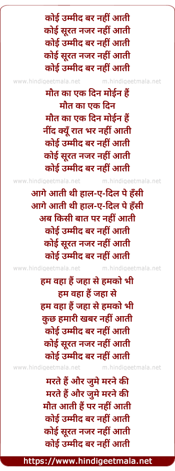 Lyrics of Koi Umeed Bar Nahi Aati - कोई उम्मीद बर नहीं आती