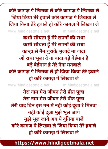 Lyrics of Kore Kaagaz Pe Likhwa Le - कोरे कागज़ पे लिखवा ले