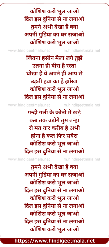 Lyrics of Koshish Karo - कोशिश करो भूल जाओ