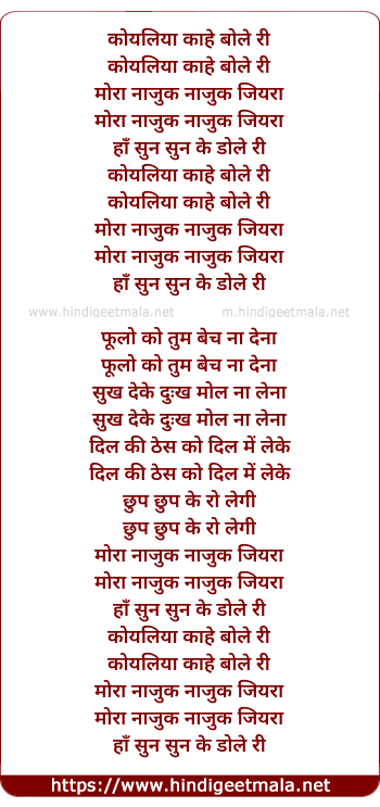 Lyrics of Koyaliya Kahe Bole Ri - कोयलिया काहे बोले री