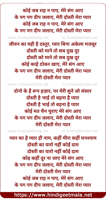 Lyrics of Koyee Jab Rah Naa Paye Mere Sang Aaye, Meri Dosti Mera Pyar - कोई जब राह ना पाये, मेरे संग आये