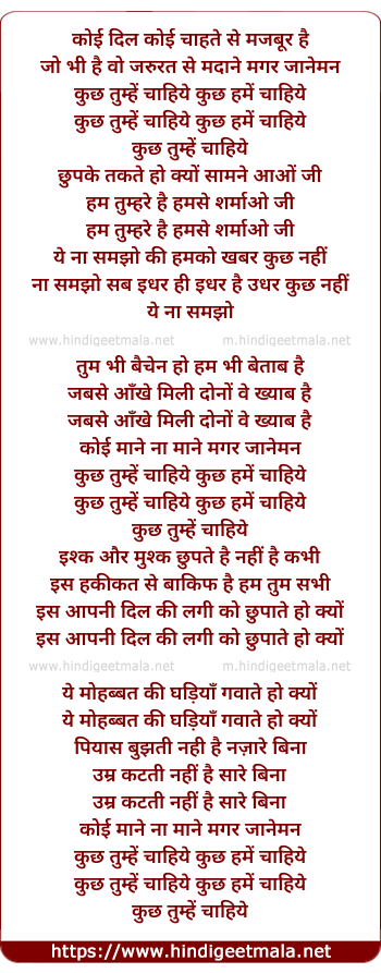 Lyrics of Koyi Dil Koyi Chahat Se - कोई दिल कोई चाहत से