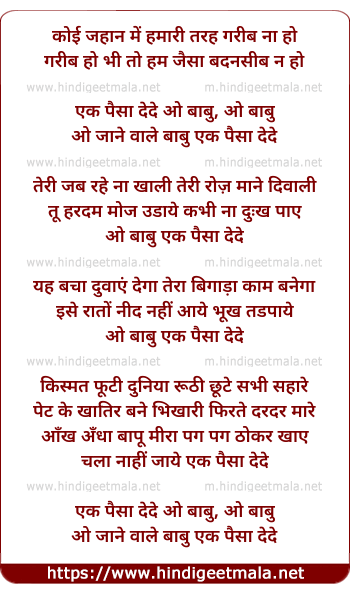 ek paisa dede, ooo babu, oo babu,