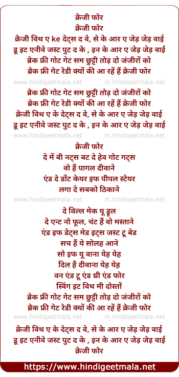 Poetic Translation - Lyrics of Krazzy 4....... - क्रेजी 4
