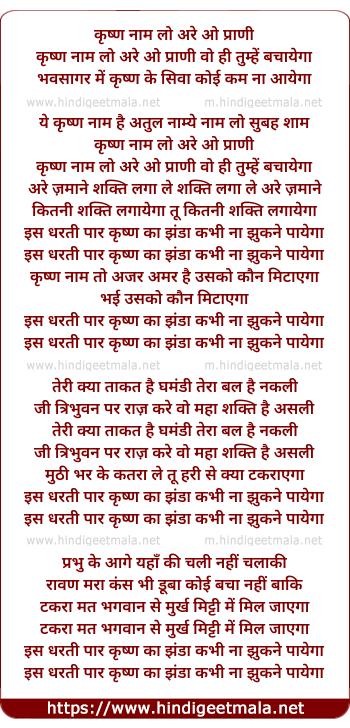 Lyrics of Krishan Naam Lo Are O Prani - कृष्ण नाम लो अरे ओ प्राणी