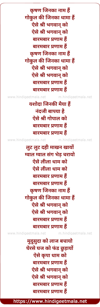 Lyrics of Krishana Jin Ka Naam Hai - कृषण जिनका नाम हैं