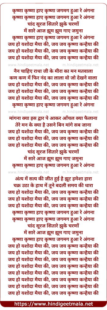 krishna krishna haaye krishna jagmag hua re angana