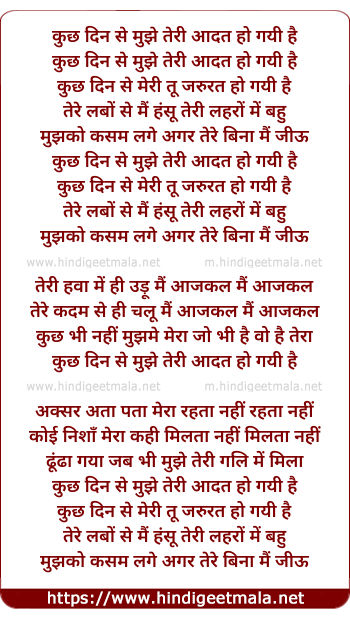 Lyrics of Kuch Din - कुछ दिन से मुझे तेरी आदत हो गयी है