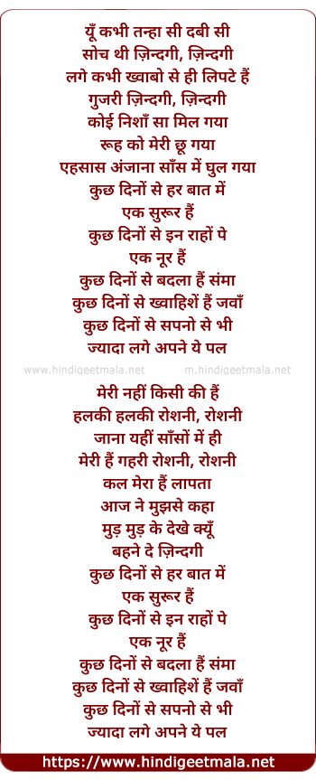 Lyrics of Kuch Dino Se - यूँ कभी तन्हा सी दबी सी