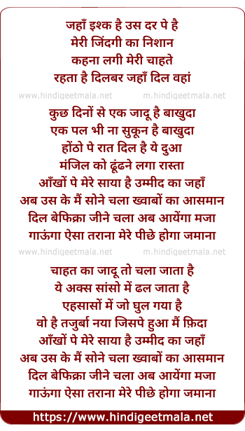 Lyrics of Kuch Dino Se Ek Junoon Hai Bakhuda - कुछ दिनों से एक जूनून है बाखुदा