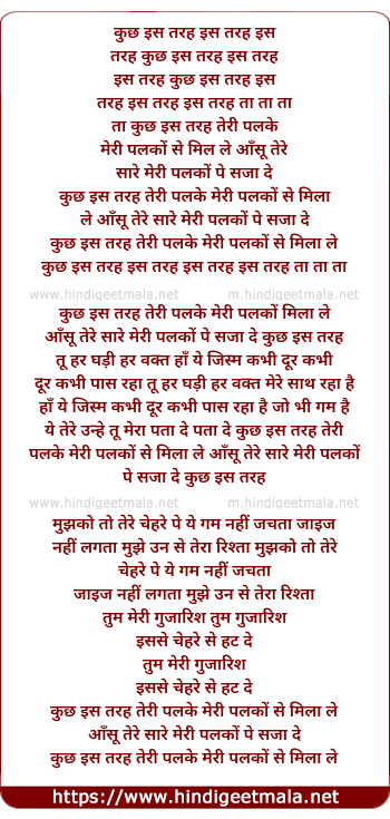 Lyrics of Kuch Is Tarah (Euro Mix) - कुछ ईस तरह (यूरो मिक्स)