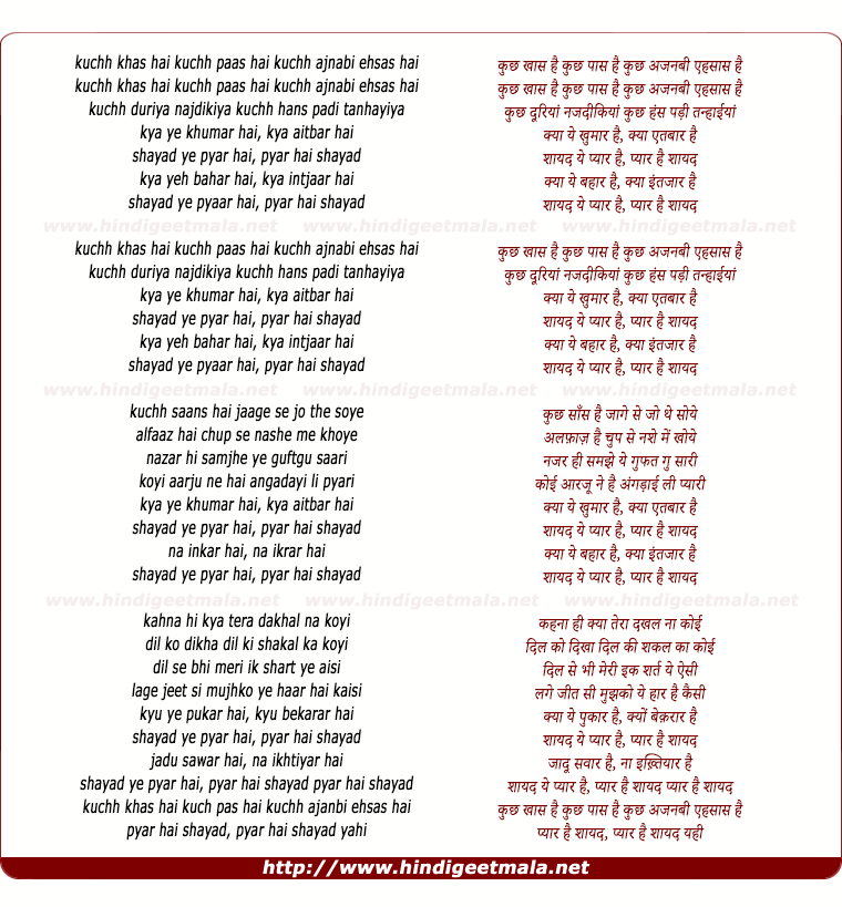 Lyrics of Kuch Khaas Hai (Remix) - कुछ खास है कुछ पास है कुछ अजनबी एहसास है