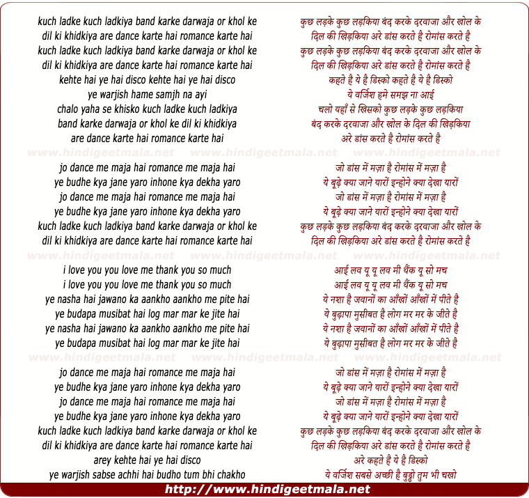 Lyrics of Kuch Ladke Kuch Ladkiya Band Karke Darwaja - कुछ लड़के कुछ लड़किया बंद करके दरवाजा