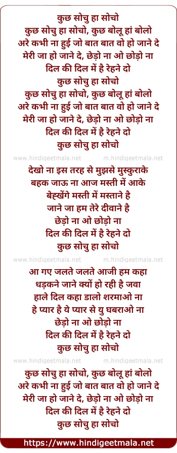 Lyrics of Kuch Sochun Ha Socho, Kuch Bolu Ha Bolo - कुछ सोचु हाँ सोचो, कुछ बोलूँ हाँ बोलो