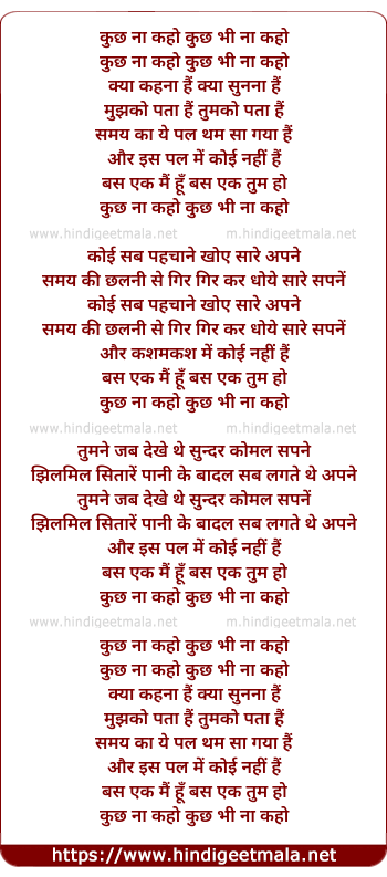 Lyrics of Kuch To Kaho - कुछ ना कहो कुछ भी ना कहो