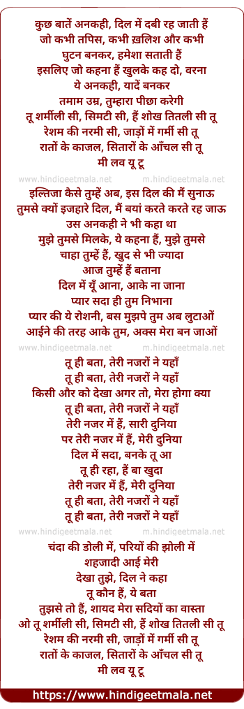 Lyrics of Kuchh Bate Ankahee - कुछ बातें अनकही, दिल में दबी रह जाती हैं