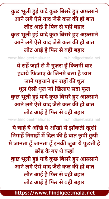 Lyrics of Kuchh Bhuli Huyi Yaade - कुछ भूली हुई यादे