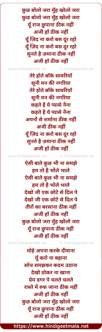 Lyrics of Kuchh Bolo Zara Muh Kholo Zara - कुछ बोलो जरा मुँह खोलो जरा