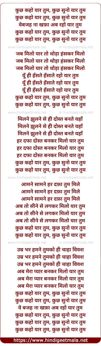 Lyrics of Kuchh Kaho Yaar Tum - कुछ कहो यार तुम, कुछ सुनो यार तुम