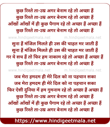Lyrics of Kuchh Rishtey Ta-Umr Agar Benaam Rahe - कुछ रिश्ते ता-उम्र अगर बेनाम रहे तो अच्छा हैं