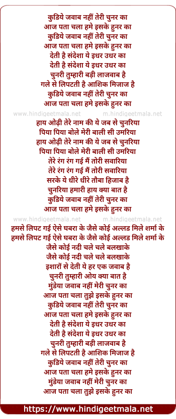 kudiye javab nahi teri chunar ka