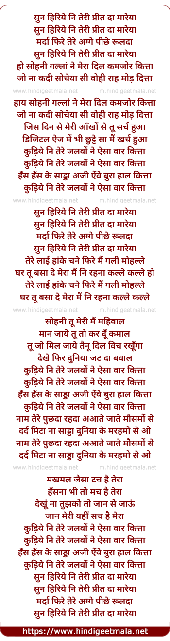 Lyrics of Kudiye Ni Tere - कुड़िये नि तेरे