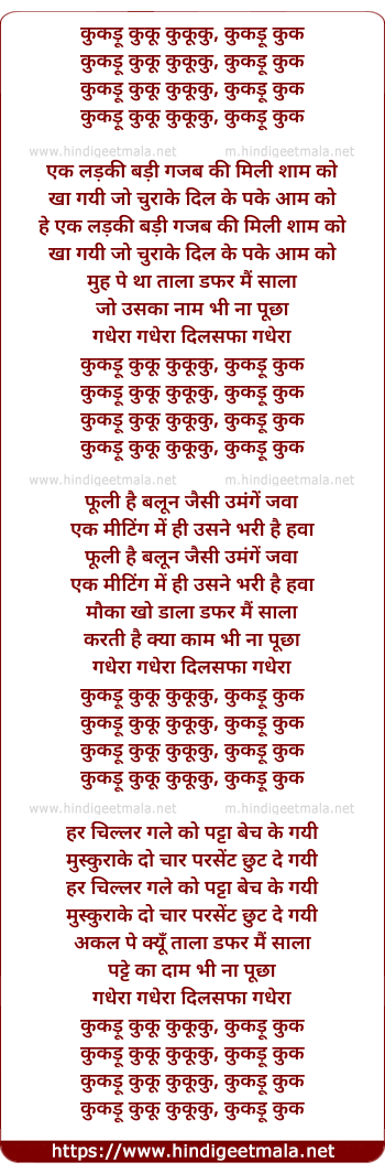 Lyrics of Kukdu Duku Kukuku - कुकड़ू डूकू कुकूकु,