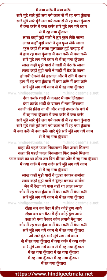 sare munde sare munde lag gaye kaam se main reh gaya kunwaara