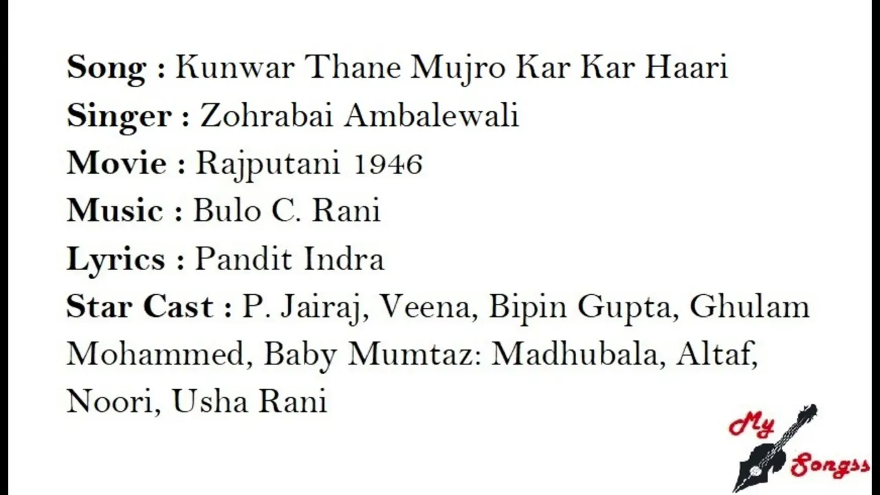 Video of "Kunwar Thane Mujro Kar Kar Haari" from YouTube