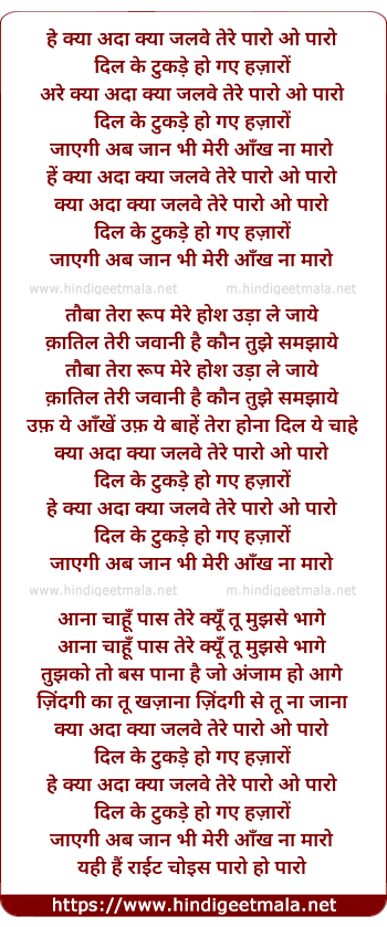 Lyrics of Kya Ada Kya Jalwe Tere Paro - क्या अदा क्या जलवे तेरे पारो