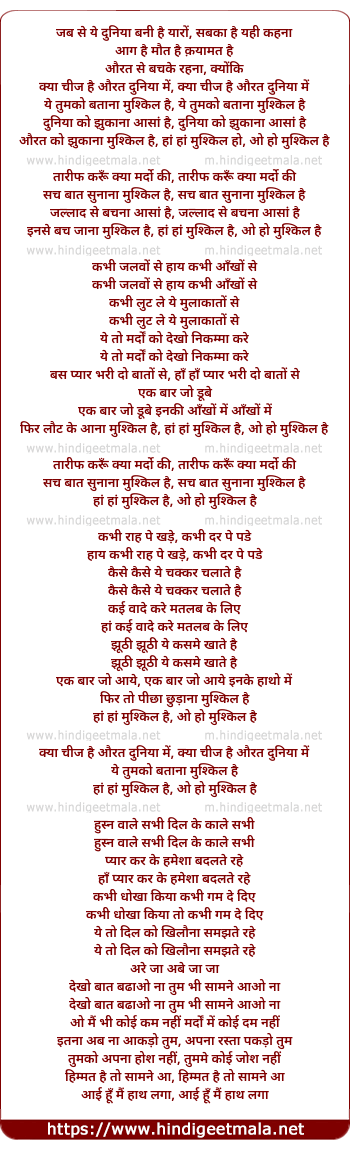 Lyrics of Kya Cheez Hai Orat Dunia Me - क्या चीज है औरत दुनिया में