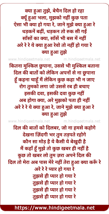 Lyrics of Kya Hua Tujhe - क्या हुआ तुझे