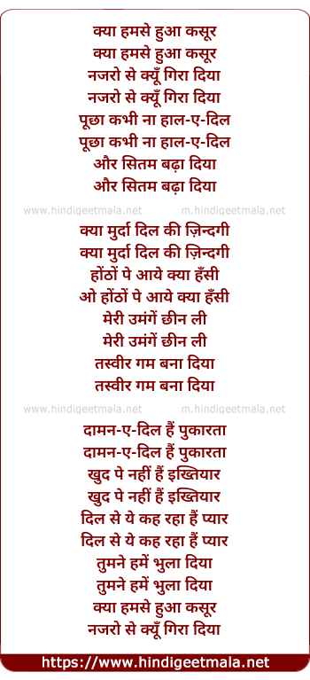 Lyrics of Kya Humse Hua Kasoor - क्या हमसे हुआ कसूर