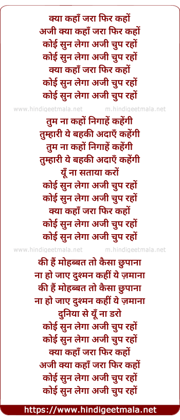 Lyrics of Kya Kaha Jara Phir Kaho - क्या कहाँ जरा फिर कहों