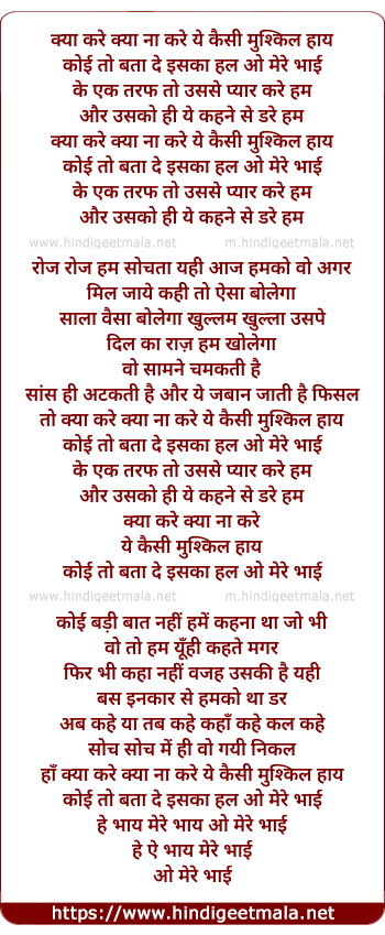 to kya kare kya na kare ye kaisi mushkil haay