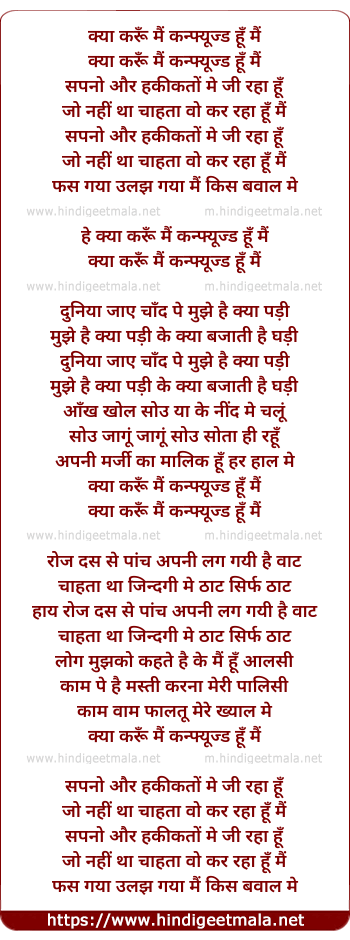 Poetic Translation - Lyrics of Kya Karu Mai - क्या करूँ मैं